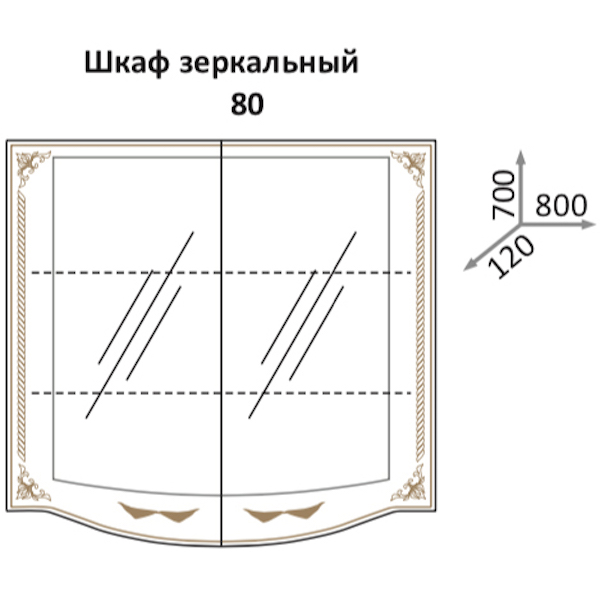 Зеркальный шкаф Какса-А Классик-Д 80 004279 Бежевый Золото