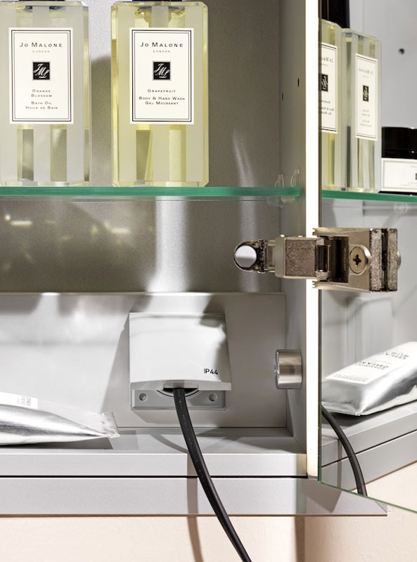 - Подсветка: два вертикальных светильника LED 14 Вт, 4000 Кельвин (дневной свет), Класс защиты IP44, 230 В.