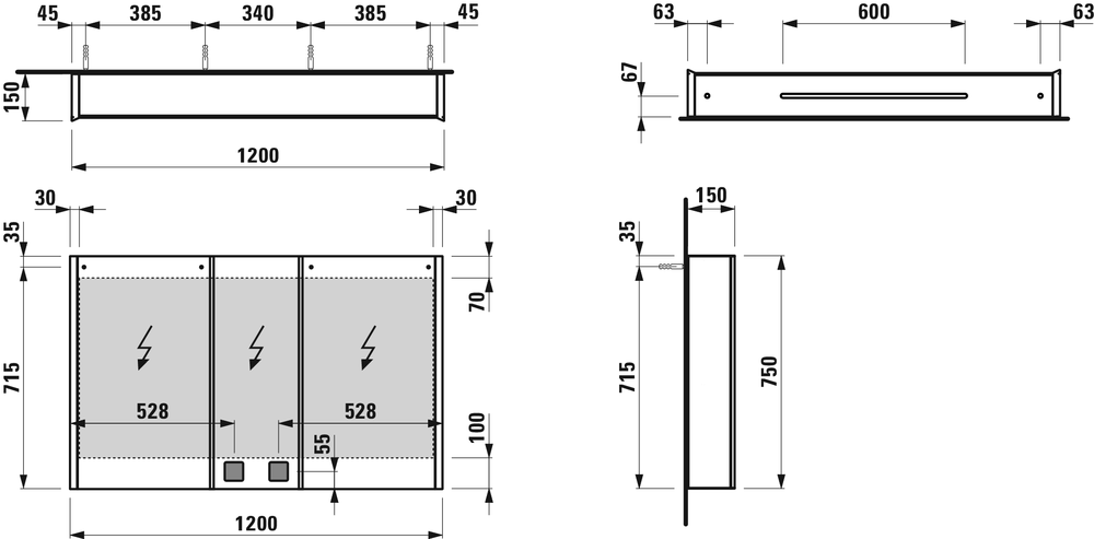 Зеркальный шкаф Laufen Frame 25 120 4.0880.4.900.144.1 с подсветкой с сенсорным выключателем