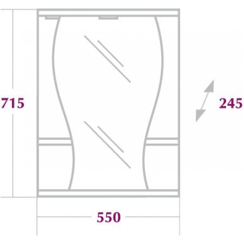 Зеркальный шкаф Onika Фигура 55.01 с подсветкой, комплектация: фурнитура металл хром, блок розетка-выключатель, трансформатор, 1 светильник.
