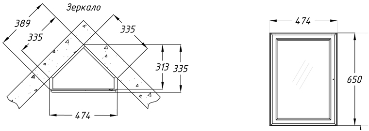 Зеркальный шкаф Opadiris Клио 45 L 00-00000219, угловой. Цвет: белый матовый.