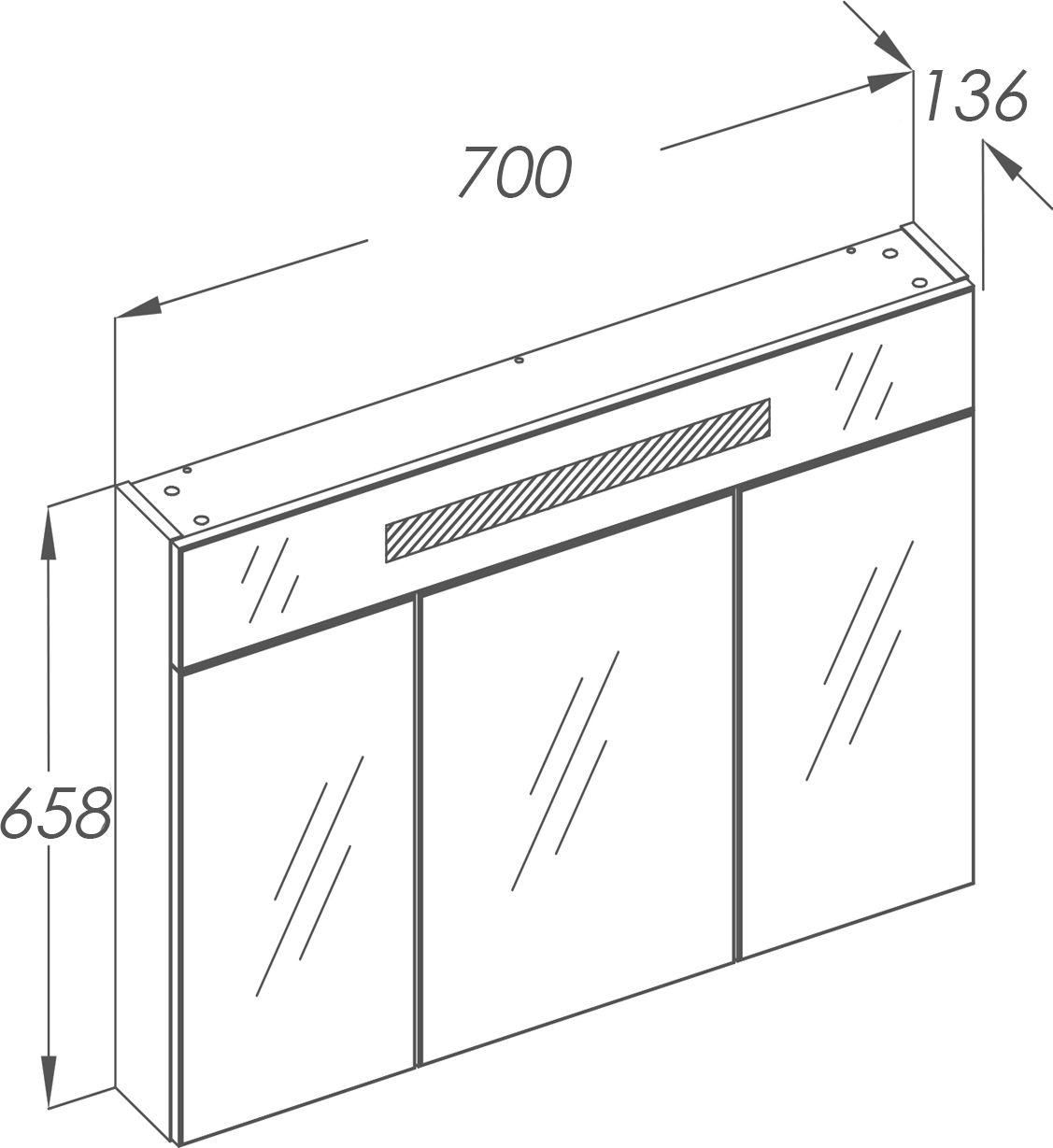 - Три распашные зеркальные дверцы с доводчиками для плавного и бесшумного закрывания.