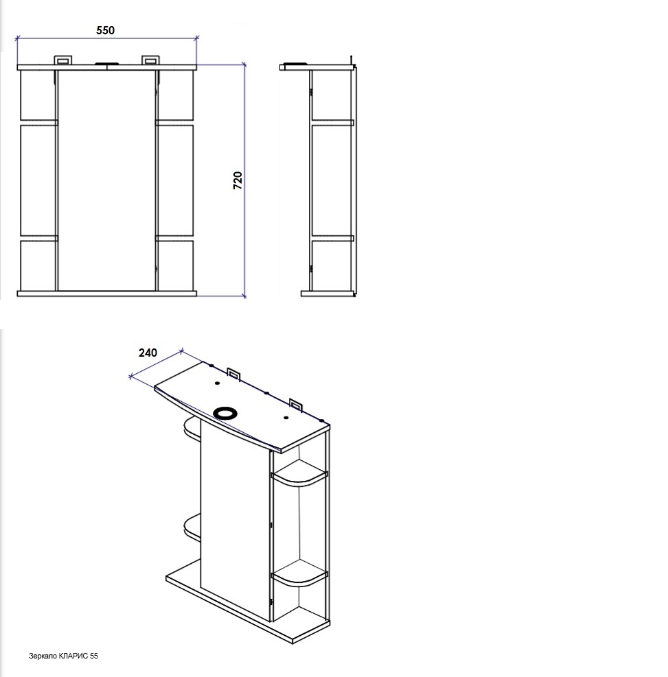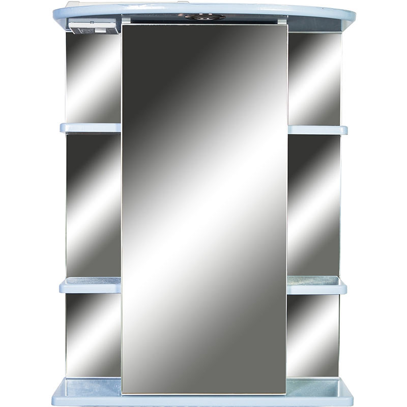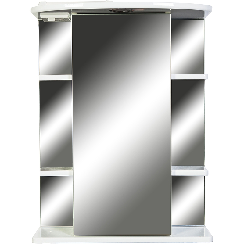 Зеркальный шкаф Orange Кларис 55 Kl-55ZSW с подсветкой, розеткой и с полочками. Предназначен для использования в ванных комнатах с повышенной влажностью. Большое количество полочек и шкафчик с зеркальной дверцей помогут удобно расположить все ванные принадлежности. Встроенная розетка для фена и других приборов. Приятная галогенная подсветка.