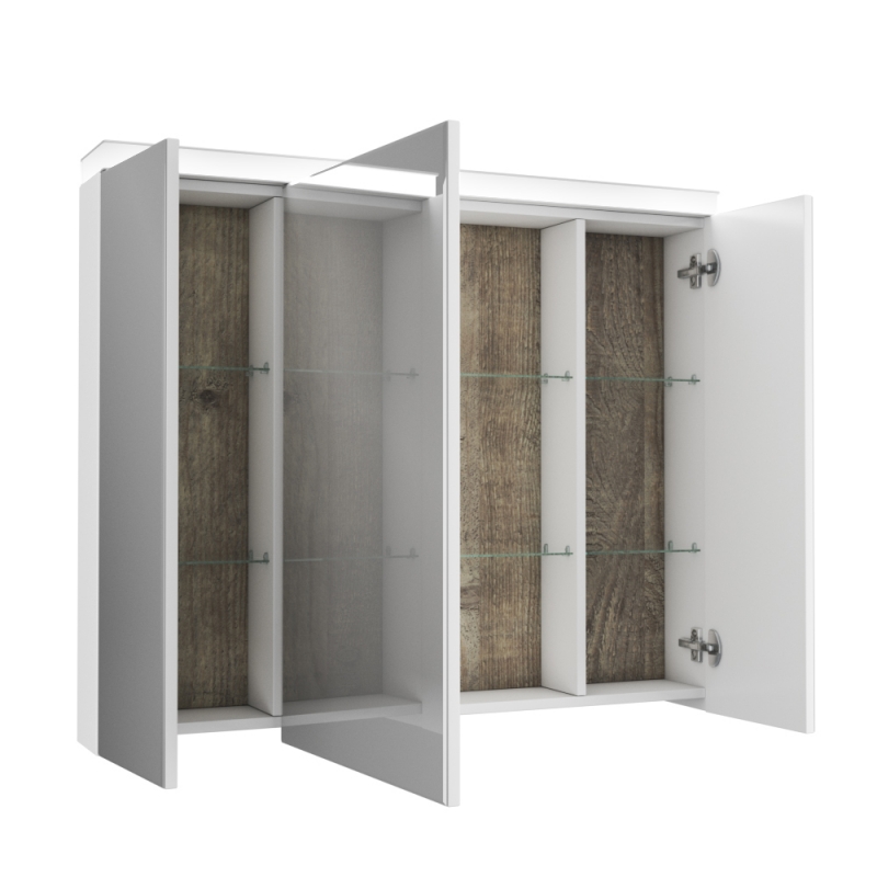- Шкаф оснащен тремя дверками с зеркалом на петлях с доводчиками для плавного и бесшумного открытия и закрытия.