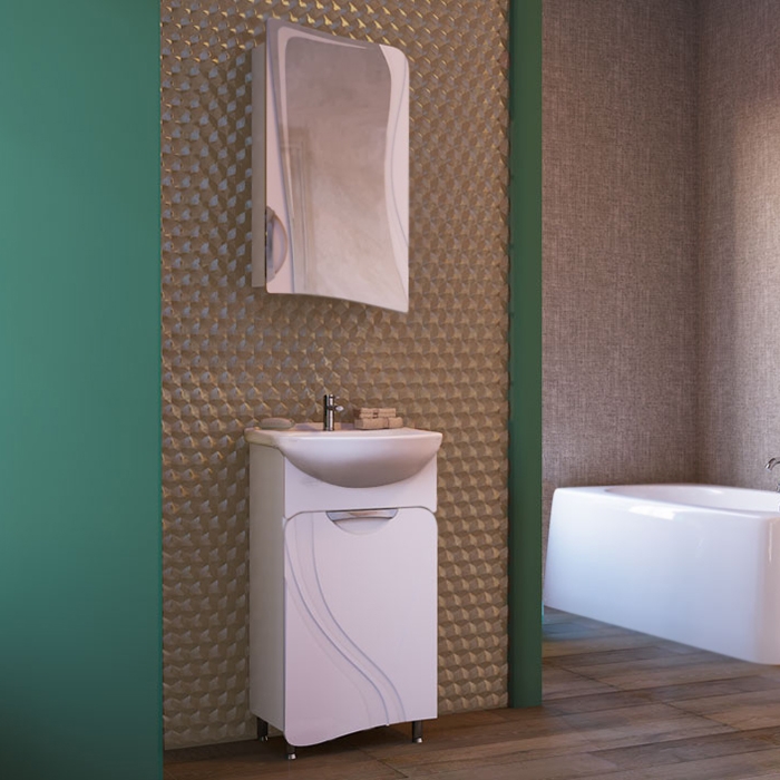Подвесной зеркальный шкаф Raval Folle 45 Fol.03.45/W с распашной дверцей. Предназначен для использования в ванных комнатах с повышенной влажностью. Влагостойкие и экологичные материалы, качественная работа фурнитуры, ударопрочность, приятные тактильные ощущения.