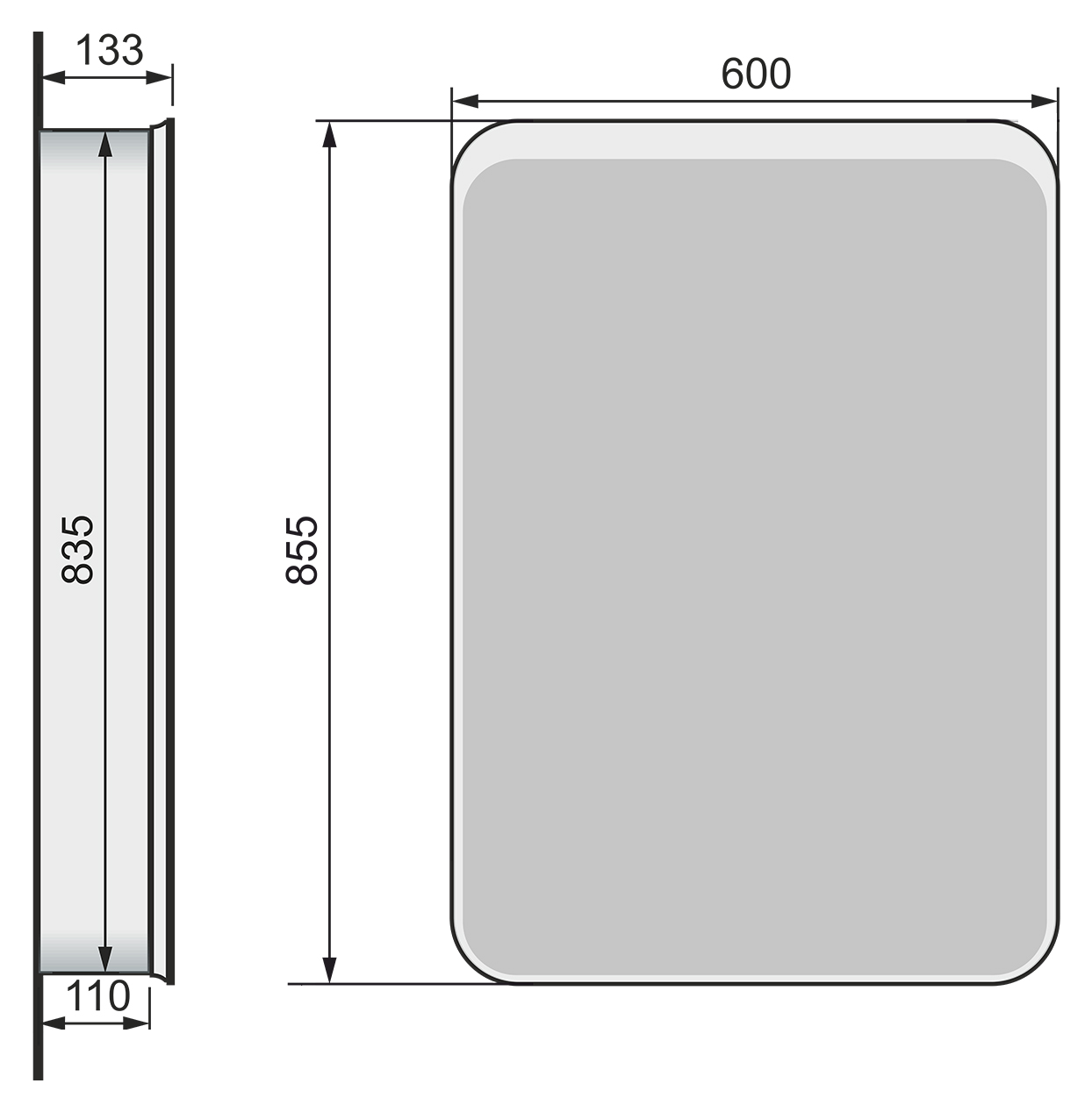 - Размеры (ШхГхВ): 60х13,3х85,5 см.