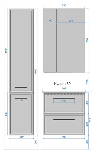 - Размеры (ШхГхВ): 59х15х90 см.