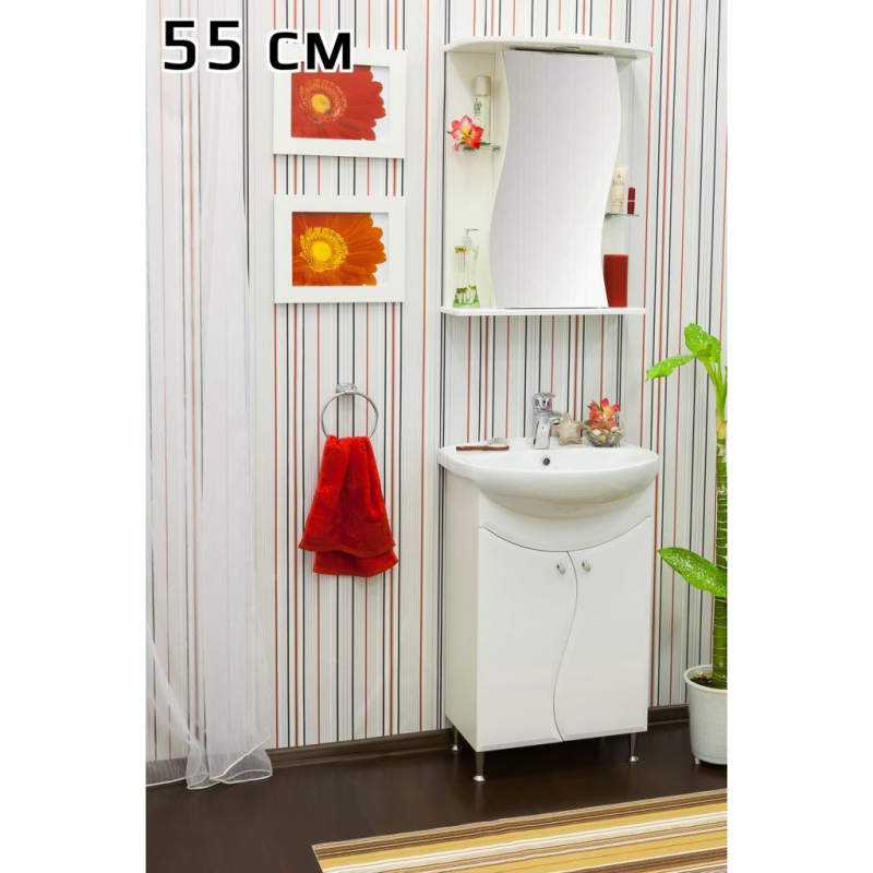 Зеркальный шкаф Sanflor Лина 55 белый Н0000000141 правосторонний со светильником.