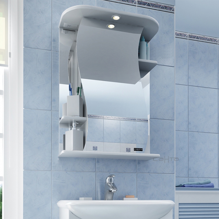 Зеркальный шкаф Санта Лира 55 с подсветкой 101053 Белый.