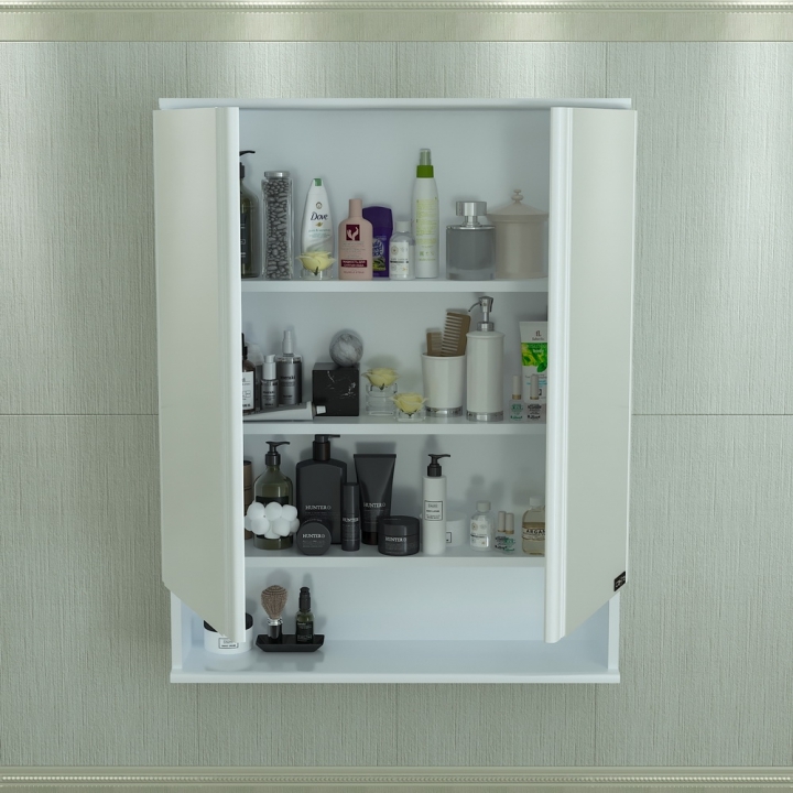 - Шкаф оснащен двумя дверцами с двойным зеркалом на петлях с доводчиками для плавного и бесшумного открытия и закрытия.