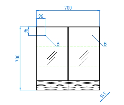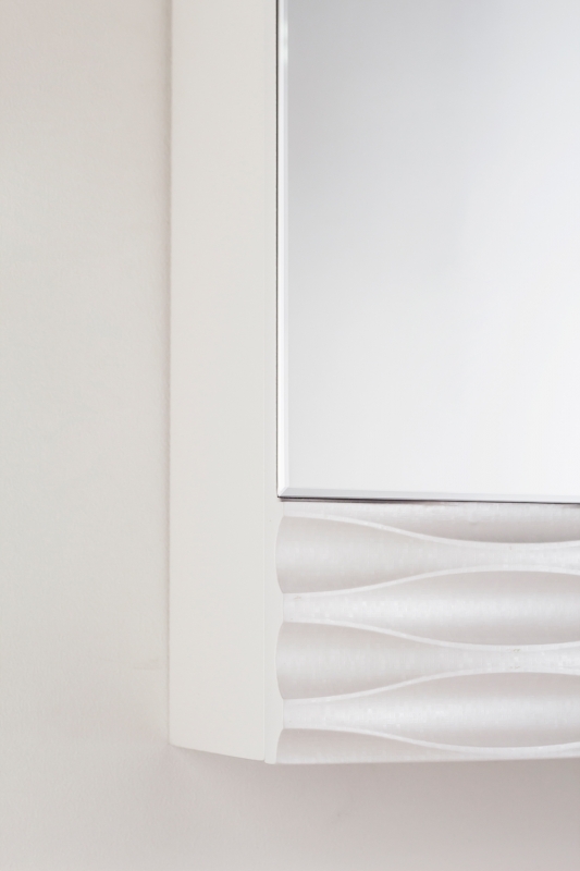 - оснащение: зеркало, крепления, механизм доводчика для плавного бесшумного закрывания дверцы.