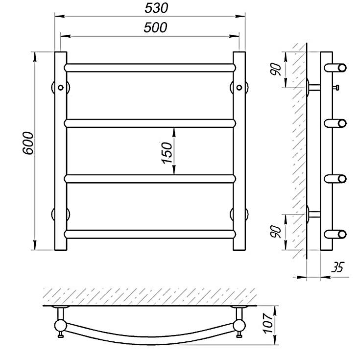 Электрический полотенцесушитель Laris Классик П4 60х50 R 73207394, цвет хром.