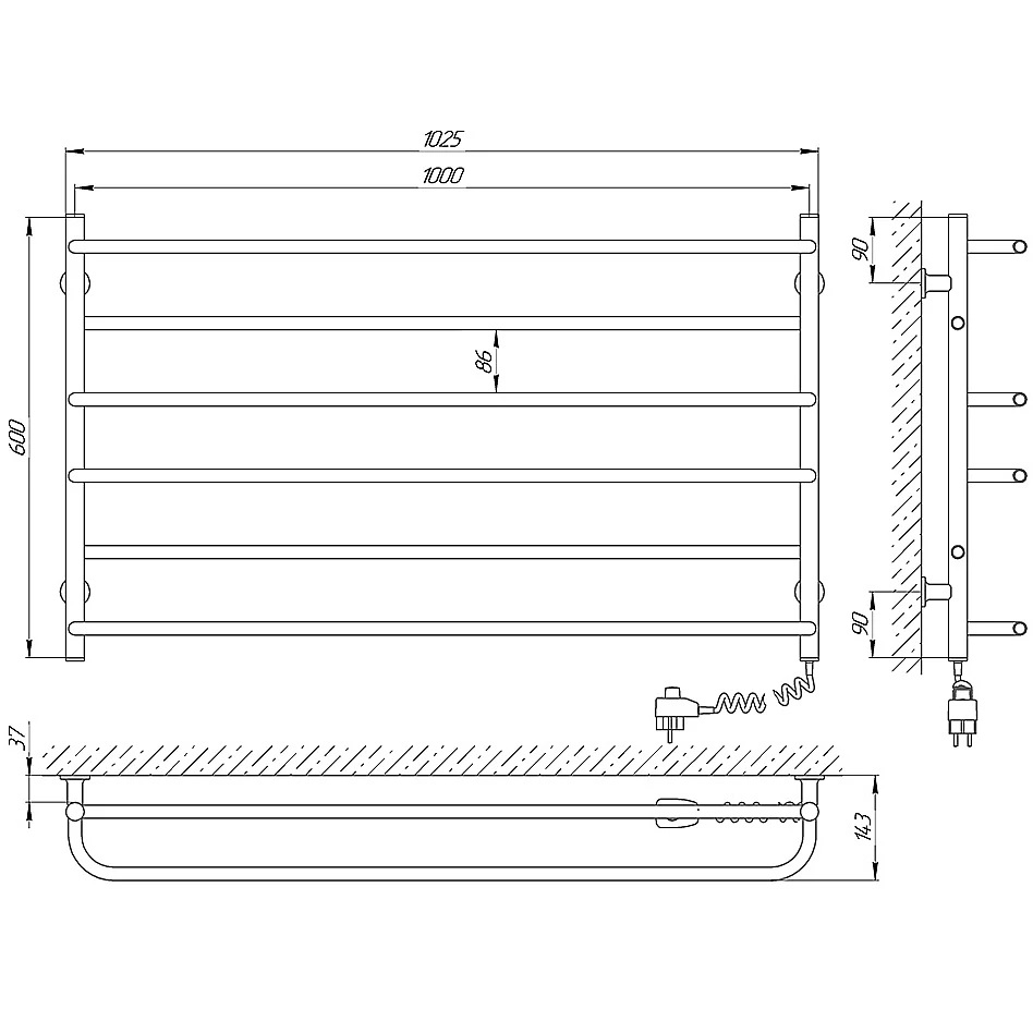 Электрический полотенцесушитель Laris Практик П6 60х100 R 75201058, цвет белый.