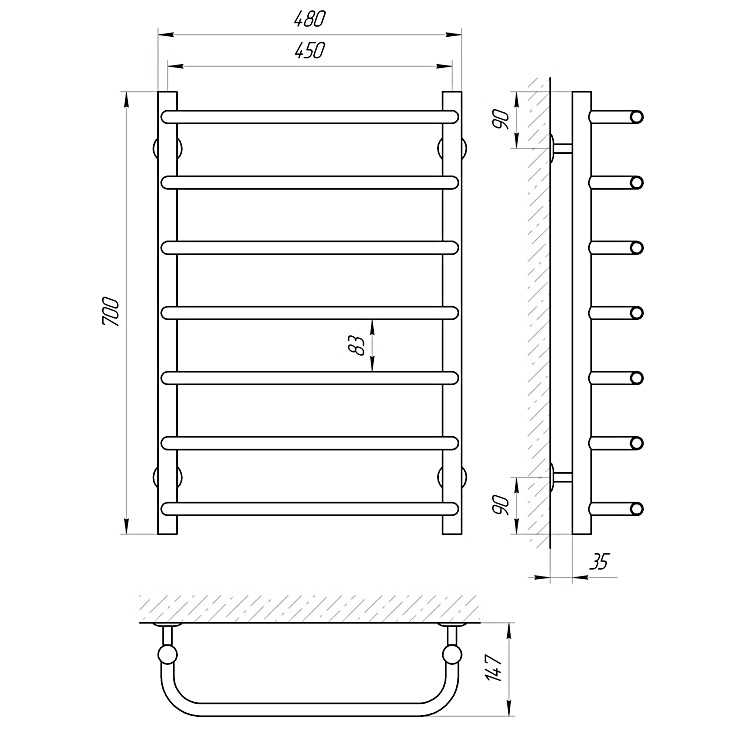 Электрический полотенцесушитель Laris Стандарт П7 70х45 R 73207233, цвет хром.