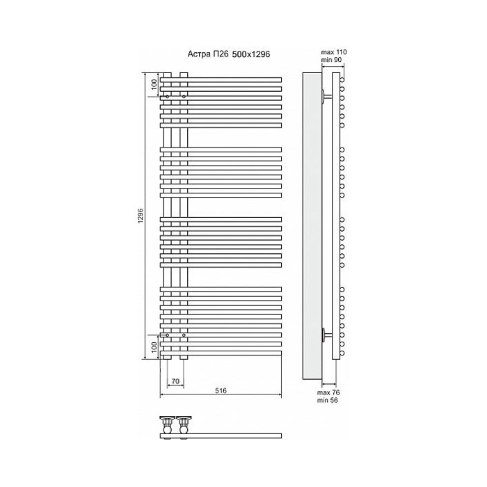 Электрический полотенцесушитель Terminus Астра П26 500x1296 4660059920467 Хром