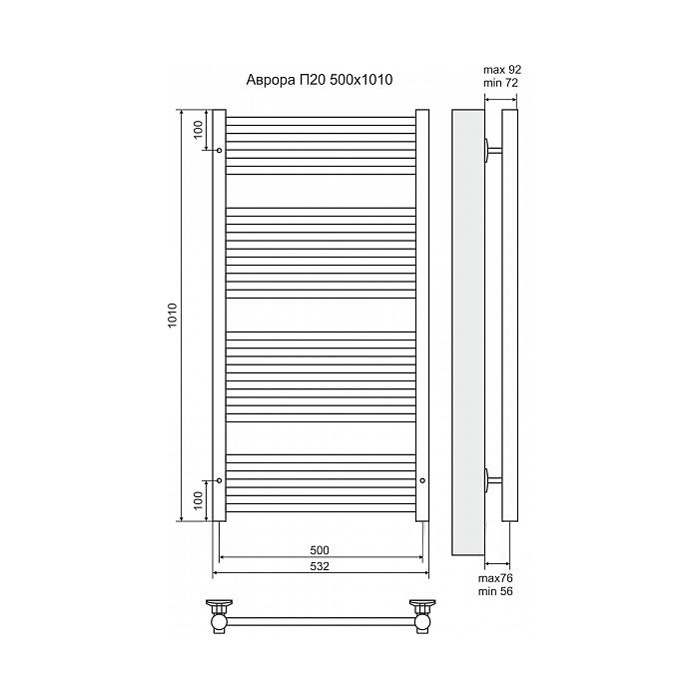 Электрический полотенцесушитель Terminus Аврора П20 500x1006 4660059920344 Хром
