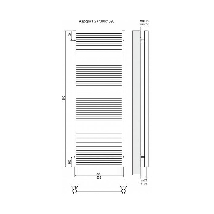 Электрический полотенцесушитель Terminus Аврора П27 500x1386 4660059920368, ТЭН HT-1 300W, левый/правый. Для производства полотенцесушителя используется только высококачественная нержавеющая сталь марки AISI 304L с высоким содержанием легирующих элементов, Ni и Cr, это позволяет изделиям сохранять стойкость к агрессивным коррозийным средам, что существенно продлевает срок их эксплуатации.