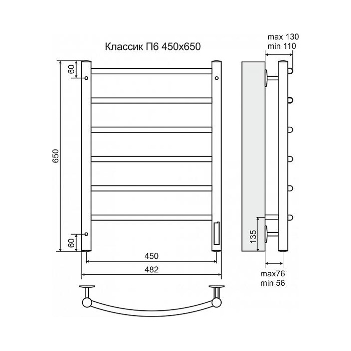 Электрический полотенцесушитель Terminus Классик П6 450x650 4630080268425 Хром диммер слева