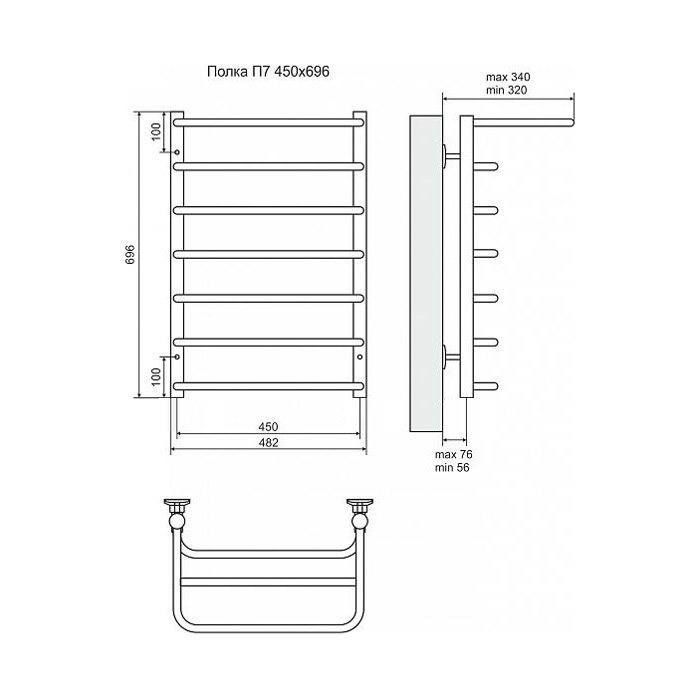 Электрический полотенцесушитель Terminus Полка П7 450x696 4660059921075 с полкой Хром