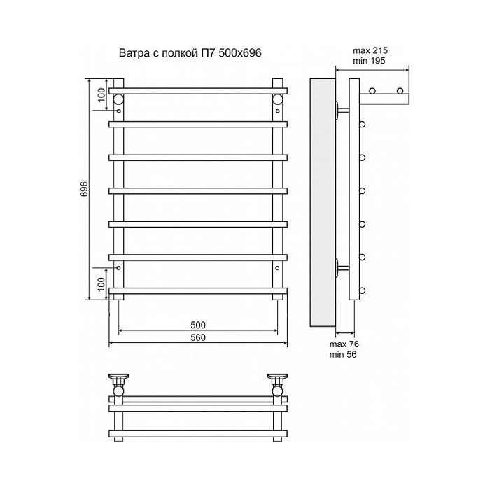 Электрический полотенцесушитель Terminus Ватра П7 500x696 4660059920535 с полкой Хром
