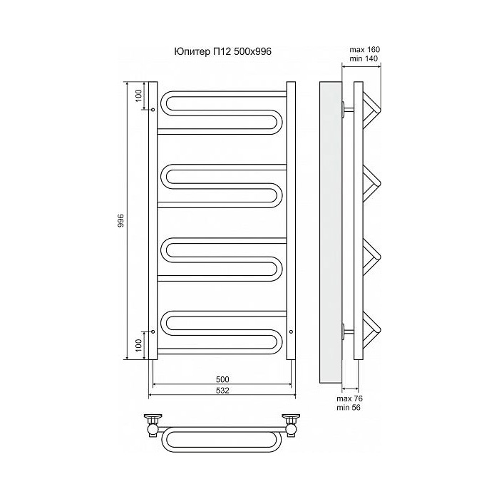 Электрический полотенцесушитель Terminus Юпитер П12 500x996 4660059921297, ТЭН HT-1 300W, левый/правый. Для производства полотенцесушителя используется только высококачественная нержавеющая сталь марки AISI 304L с высоким содержанием легирующих элементов, Ni и Cr, это позволяет изделиям сохранять стойкость к агрессивным коррозийным средам, что существенно продлевает срок их эксплуатации.