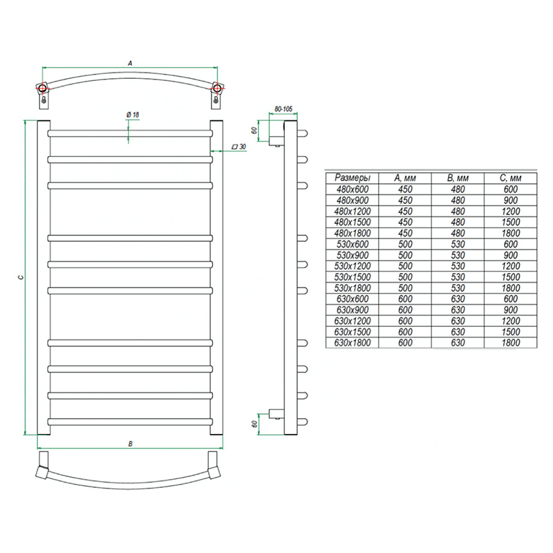 - Вид полотенцесушителя: Лесенка.