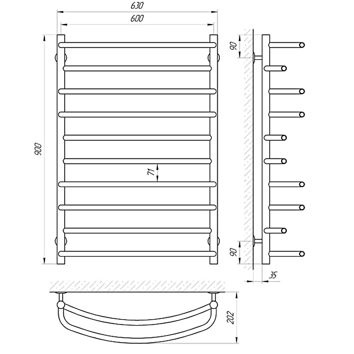 Предназначен для сушки текстильных изделий. Группировка перекладин 10. Все элементы полотенцесушителя выполнены из нержавеющей стали.