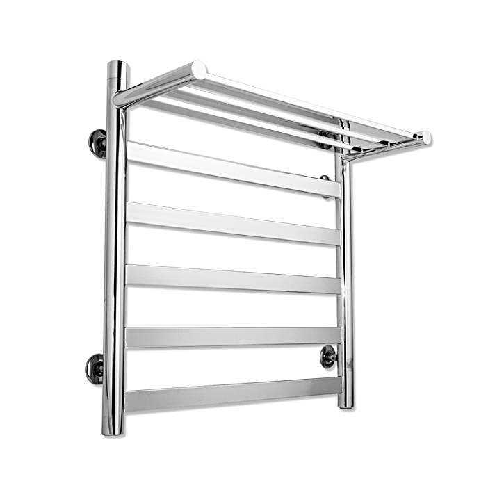 Масляный электрический полотенцесушитель Laris Кватро П6 50х50 с полкой, цвет хром - имеет вид лесенки с функциональным элементом - верхней горизонтальной полочкой. Полотенцесушитель наполнен маслом. Масло длительное время удерживает температуру и оказывает меньший коррозийный эффект на металл.