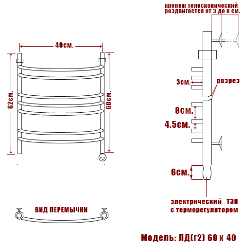 Электрический полотенцесушитель Ника Arc ЛД (г2) Эл. 60x40 см, цвет хром.