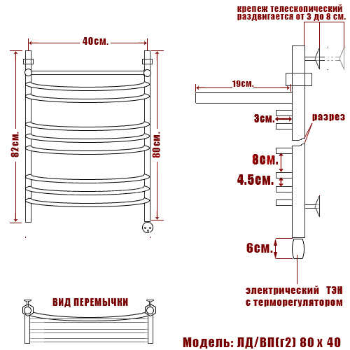 Используется для просушки влажных вещей и полотенец, а также дополнительного обогрева помещения. Изготовлен из пищевой нержавеющей стали марки AISI 304 (Италия) с антикоррозийным покрытием, отличается надежностью, безопасностью и удобством использования. Отсутствует вероятность замерзания теплоносителя.
