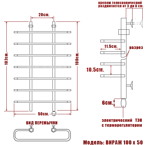 Используется для просушки влажных вещей и полотенец, а также дополнительного обогрева помещения. Изготовлен из пищевой нержавеющей стали марки AISI 304 (Италия) с антикоррозийным покрытием, отличается надежностью, безопасностью и удобством использования. Отсутствует вероятность замерзания теплоносителя.