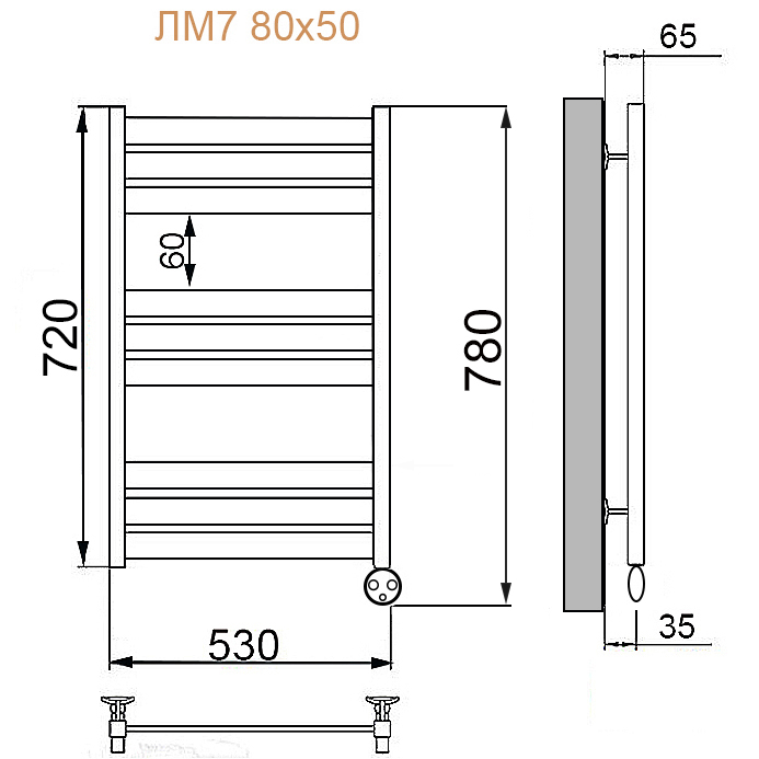 Электрический полотенцесушитель Ника Modern ЛМ 7 80x50 масляный Черный 9 перекладин