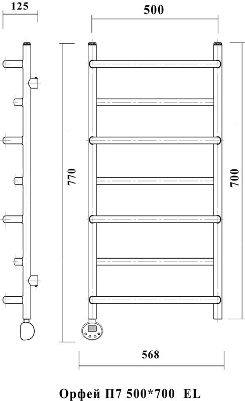 Полотенцесушитель электрический Domoterm Орфей П7 500*700 EL Хром