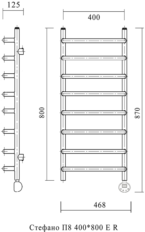 Полотенцесушитель электрический Domoterm Стефано П8 400*800 ER Хром