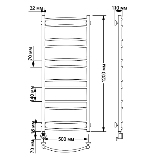 - Вид полотенцесушителя: лесенка.