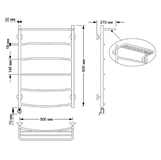 Полотенцесушитель используется для просушки влажных вещей и полотенец, а также дополнительного обогрева помещения. Изготовлен из латуни, которая отличается стойкостью к высоким температурам и образованию коррозии, выдерживает значительные перепады давления.