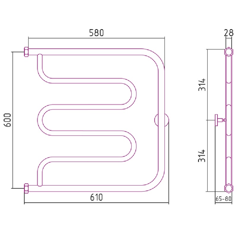 Группировка перекладин 6. Все элементы полотенцесушителя выполнены из нержавеющей стали.