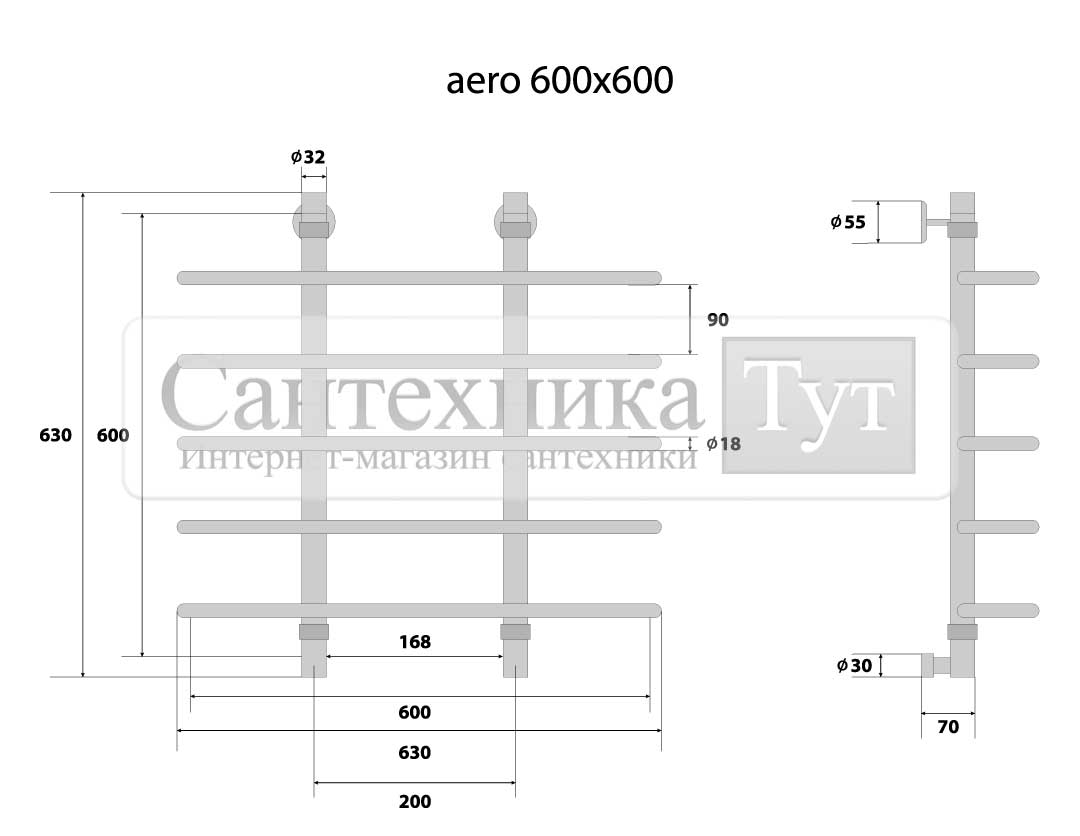 Полотенцесушитель Energy Aero 600x600 водяной хром. Количество перекладин: 5. Произведено в России.