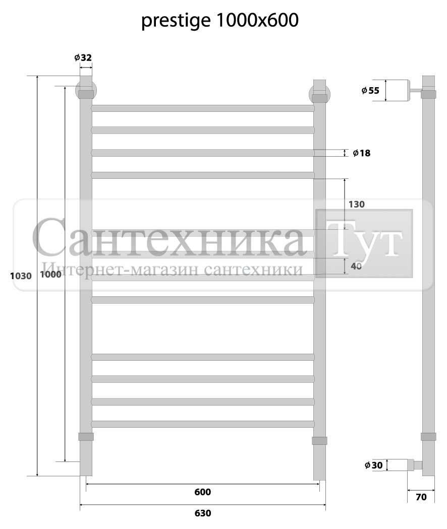Полотенцесушитель Energy Prestige 1000x600 водяной хром. Количество перекладин: 12. Объем обогреваемого помещения - 14 кубометров. Произведено в России.