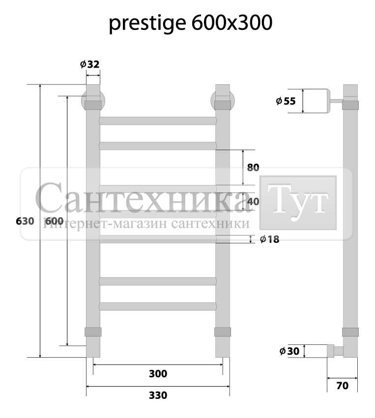 Полотенцесушитель Energy Prestige 600x300 водяной хром. Количество перекладин: 7. Произведено в России.