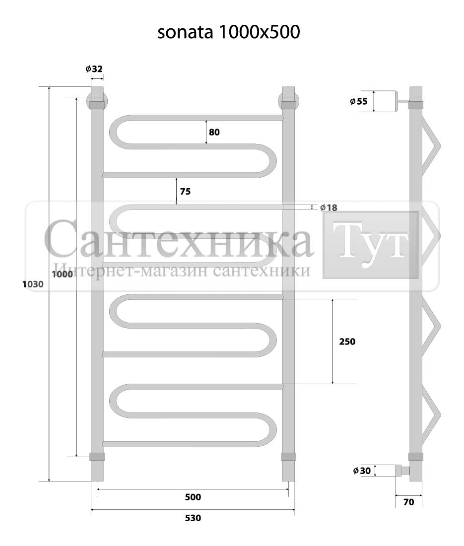 Полотенцесушитель Energy Sonata 1000x500 водяной хром. Количество перекладин: 12. Произведено в России.