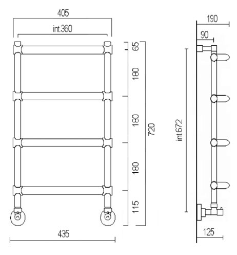 Водяной полотенцесушитель Margaroli 4323704CRN. Имеет выпуклую форму. Расстояние от стены: 190 мм. Диаметр латунной трубы - 25 мм. Подключение - 1/2 внешняя резьба. Максимально рабочее давление 15 атм. Расстояние между центрами отверстий крепления к стене - 360 мм