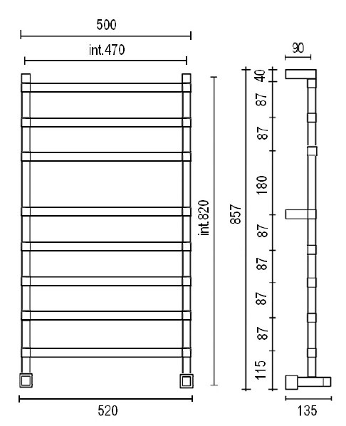 Водяной полотенцесушитель Margaroli 7644708CRN. Подключение - 1/2 внешняя резьба. Максимально рабочее давление 15 атм. Расстояние между центрами отверстий крепления к стене - 470 мм
