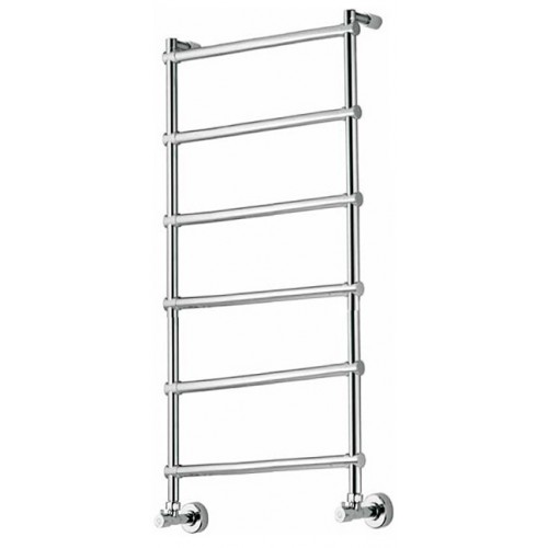 Водяной полотенцесушитель Margaroli 4423706CRN, на шесть секции: Расстояние от стены: 125 мм, диаметр латунной трубы - �25 мм, максимально рабочее давление 15 атм, расстояние между центрами отверстий крепления к стене - 370 мм.