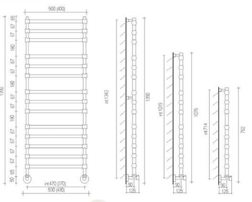 Водяной полотенцесушитель Margaroli 4643711CRN, на 11 секций, Расстояние от стены: 125 мм. Диаметр латунной трубы - 25 мм. Подключение - 1/2 внешняя резьба.На 11 (одиннадцать) секций. Максимально рабочее давление 15 атм. Расстояние между центрами отверстий крепления к стене - 370 мм