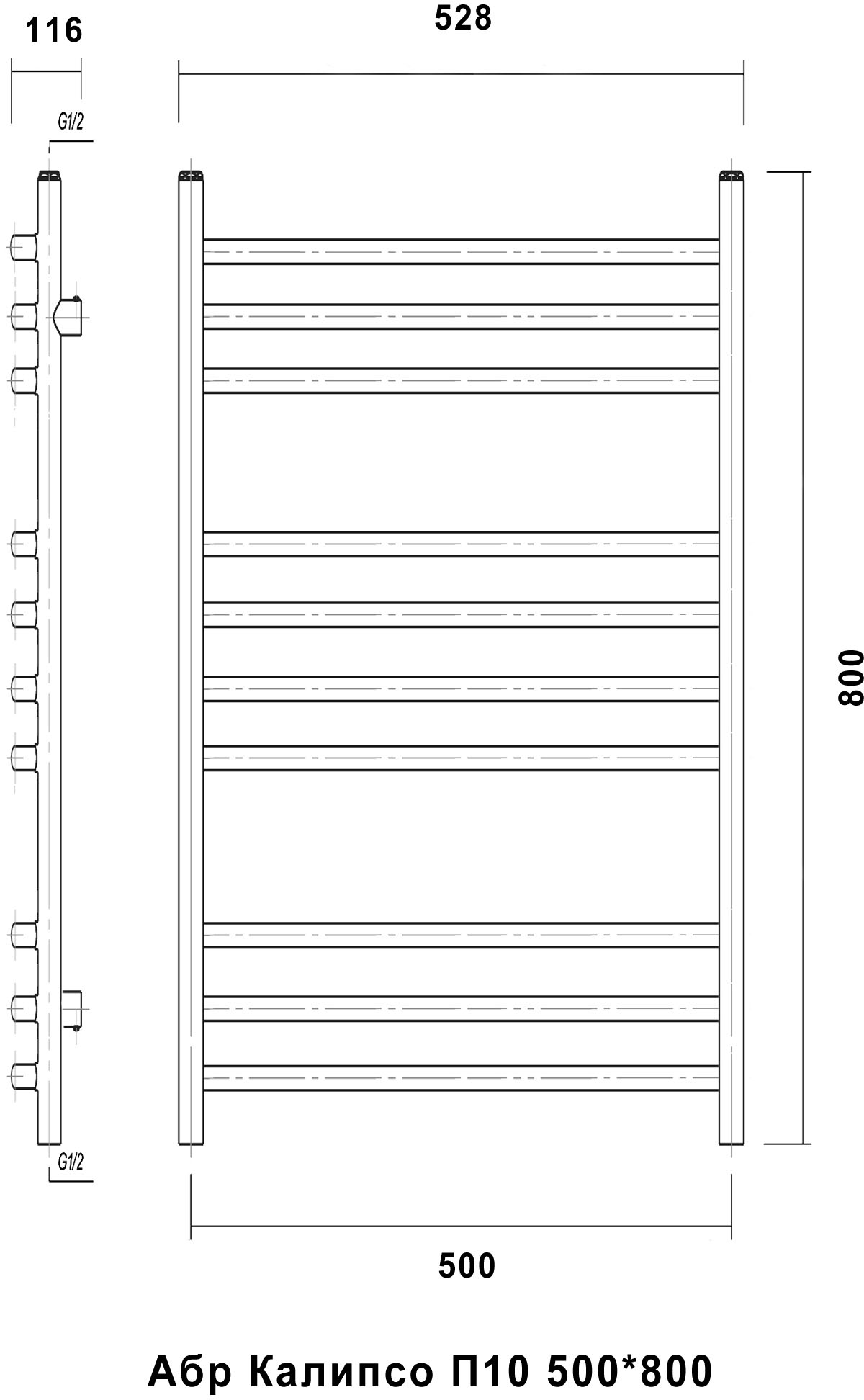 - Внешние габариты (высота х ширина х глубина) (мм): 800x500x116