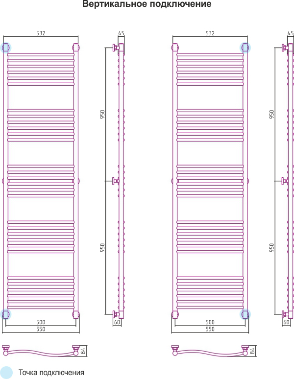 Надежный дизайн-радиатор изготовлен из высококачественной пищевой нержавеющей стали, работает при любом качестве воды и в любой системе ГВС.