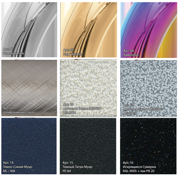 - нержавеющая сталь AISI 304 L (04X18H10), без покрытия,