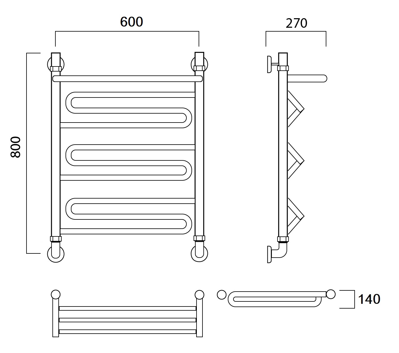 Изделие предназначено для просушки изделий из ткани, обогрева душевых и ванных комнат. Полотенцесушитель устанавливается к системе отопления, либо горячего водоснабжения. Изделие произведенно из н стали марки AISI304 — это износостойкий, антикоррозийный материал, который с легкостью выдерживает агрессивную среду систем отопления. Сварной шов конструкции выполнен лазером, это дает гарант высокого качества и работоспособности в российских системах водоснабжения и подходит для использования в системах с рабочим давлением 3 — 15 атмосфер, при T до 105°С.
