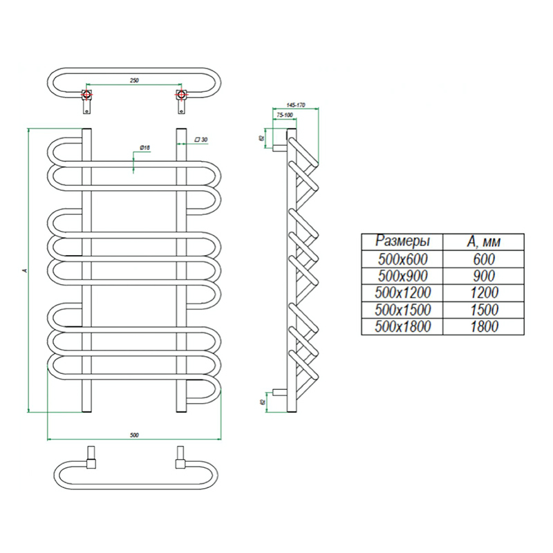 Водяной полотенцесушитель Grota Rivolo 500х1500.